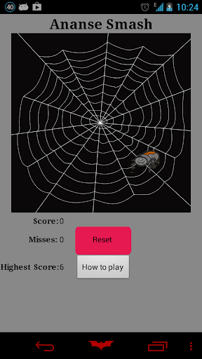 As the name implies, you are expected to hit the forever-moving Ananse the spider. Your goal is to gain as much points as you can before you miss it ten times. At which point, your game is over.Of course it gets boring after a while. However, because high score is stored, you will definitely want to beat your high score each time you open the app.